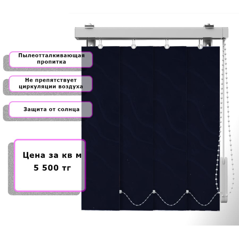 Вертикальные жалюзи Ирис (Арт. 5020) Темно синий - подходят для жилых, офисных и общественных помещений. Уход прост: достаточно протирать ламели влажной салфеткой или использовать мягкую щётку. При необходимости возможна деликатная ручная стирка.