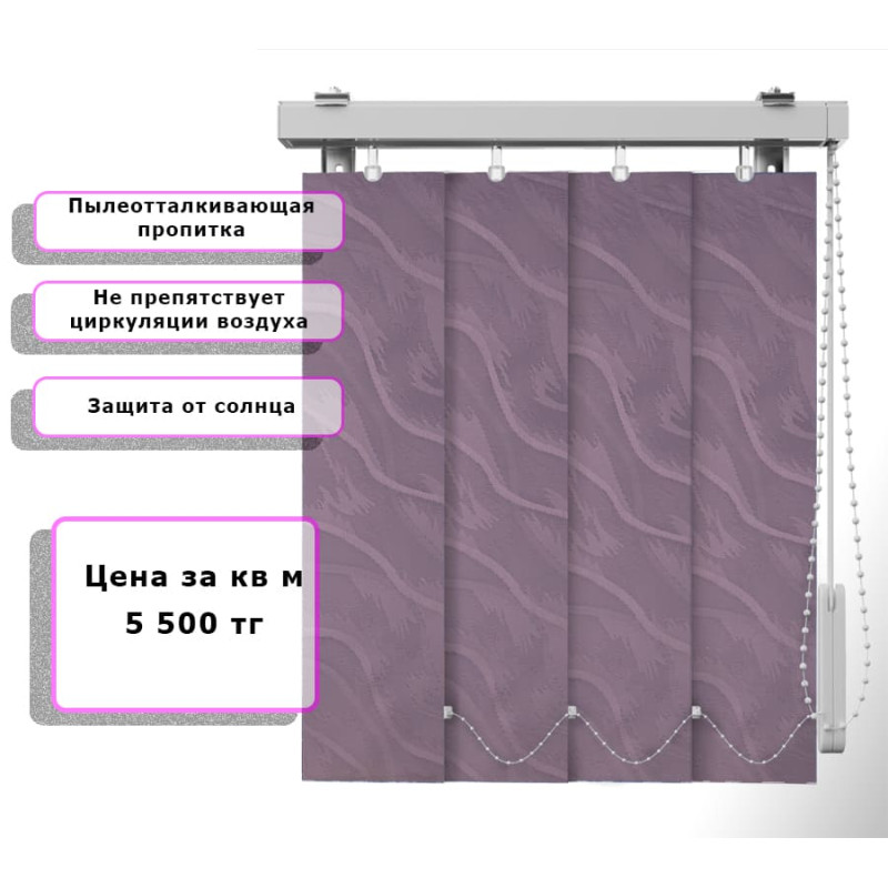 Вертикальные жалюзи Ирис (Арт. 5029) Пыльно сиреневый — практичное и стильное решение для оформления оконных проёмов. Они отлично защищают помещение от солнечных лучей, создают комфортную атмосферу и позволяют легко регулировать уровень освещения. Благодаря современным материалам и широкому выбору расцветок жалюзи гармонично впишутся в любой интерьер — от классического до современного.