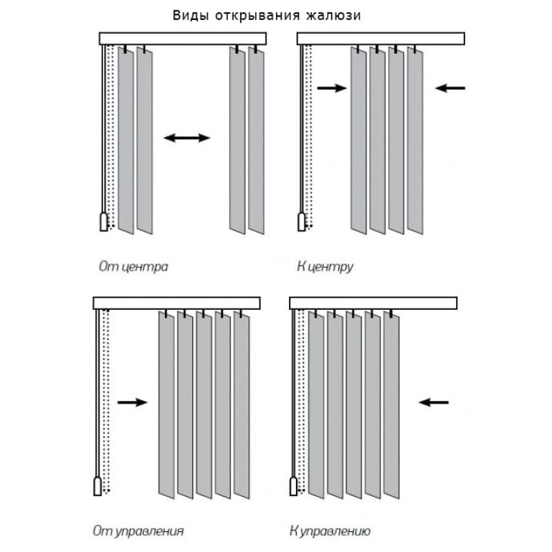 Жалюзи состоят из ламелей шириной 89 мм, закреплённых на прочном алюминиевом карнизе. Управление осуществляется при помощи удобной цепочки и шнура, что позволяет плавно поворачивать и раздвигать ламели. Механизм рассчитан более чем на 20 000 циклов открытия и закрытия, что гарантирует долговечность конструкции.
