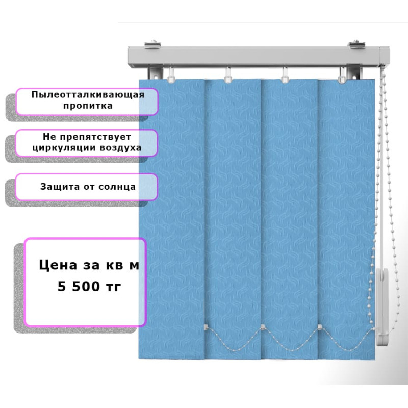 Вертикальные жалюзи Ниагара (Арт. 4816) Светло голубой - подходят для жилых, офисных и общественных помещений. Уход прост: достаточно протирать ламели влажной салфеткой или использовать мягкую щётку. При необходимости возможна деликатная ручная стирка.