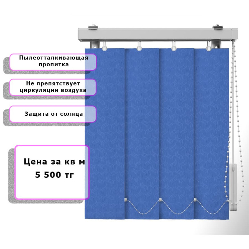 Вертикальные жалюзи Ниагара (Арт. 4817) Голубой - подходят для жилых, офисных и общественных помещений. Уход прост: достаточно протирать ламели влажной салфеткой или использовать мягкую щётку. При необходимости возможна деликатная ручная стирка.