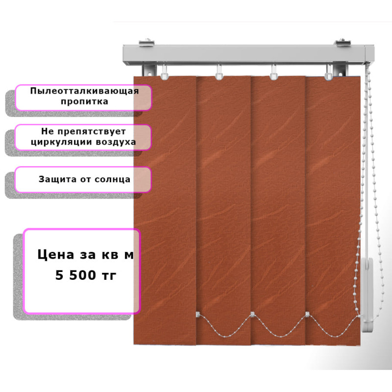 Вертикальные жалюзи Венеция (Арт. 6037) Оранжевый - подходят для жилых, офисных и общественных помещений. Уход прост: достаточно протирать ламели влажной салфеткой или использовать мягкую щётку. При необходимости возможна деликатная ручная стирка.