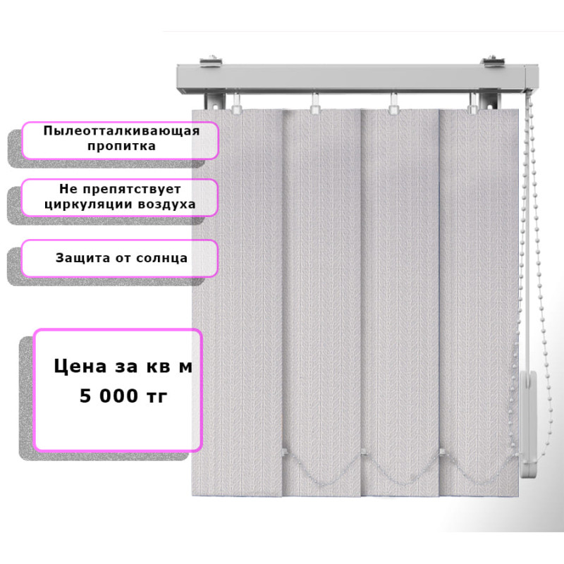 Вертикальные жалюзи Ёлочка (Арт. 2102) Молочный — практичное и стильное решение для оформления оконных проёмов. Они отлично защищают помещение от солнечных лучей, создают комфортную атмосферу и позволяют легко регулировать уровень освещения. Благодаря современным материалам и широкому выбору расцветок жалюзи гармонично впишутся в любой интерьер — от классического до современного.