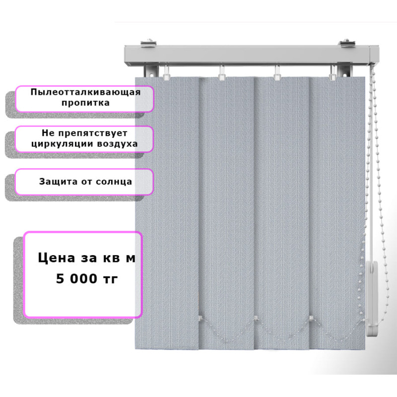 Вертикальные жалюзи Ёлочка (Арт. 2108) Серый - подходят для жилых, офисных и общественных помещений. Уход прост: достаточно протирать ламели влажной салфеткой или использовать мягкую щётку. При необходимости возможна деликатная ручная стирка.